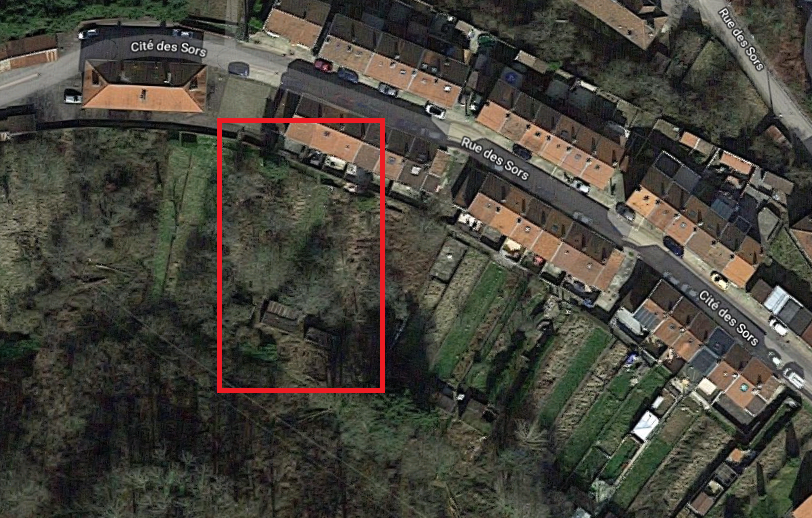 C'est dans une cité minière donc tous les terrains sont placés parallèlement derrière les maisons. Le mien n'est pas visible depuis la route.